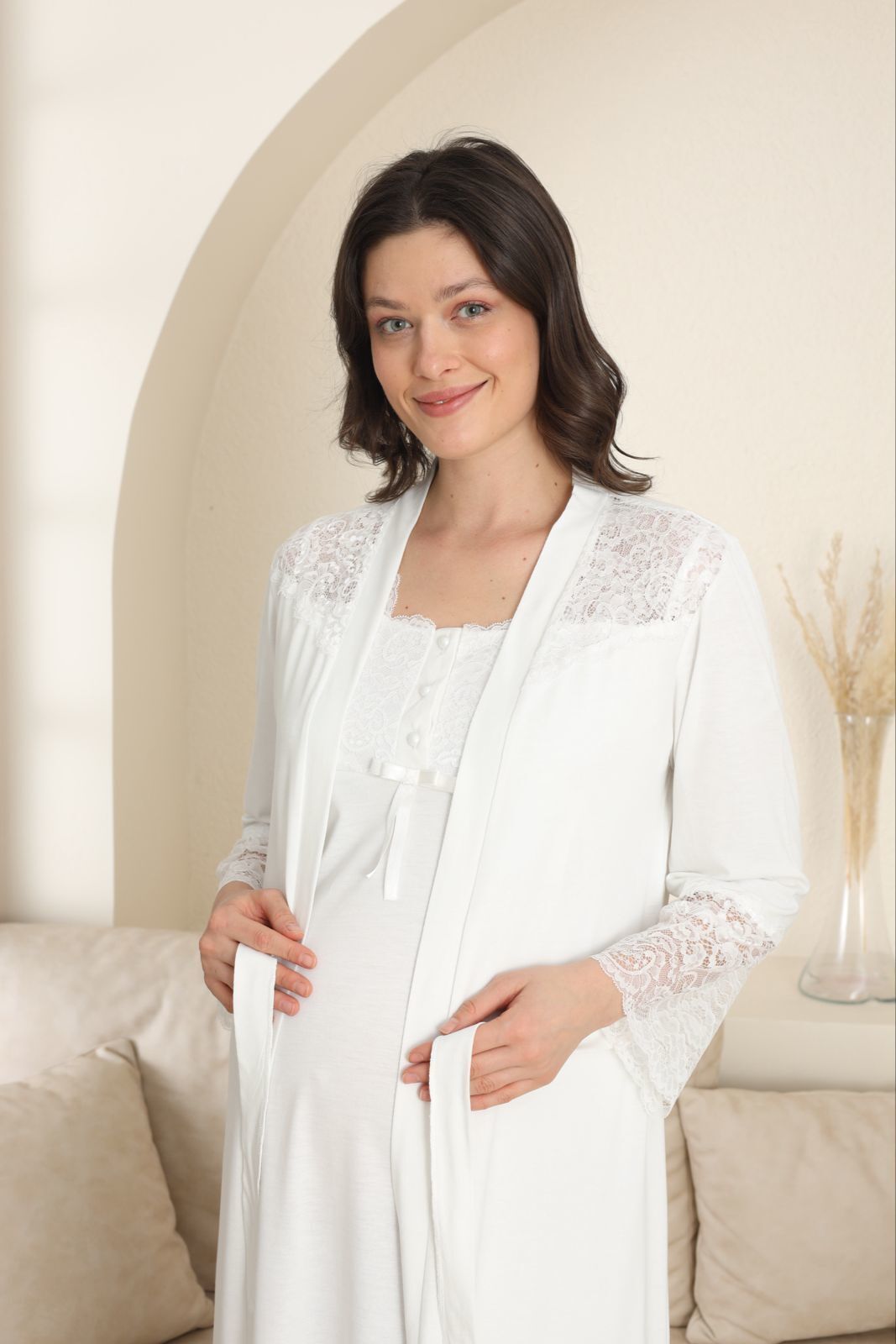Bu lohusa gecelik sabahlık, yeni annelere rahatlık ve şıklık sunar. Yumuşak pamuklu kumaşı ve geniş kesimi ile rahat bir şekilde uyumanızı sağlar. Aynı zamanda şık tasarımı ile hoşunuza gidecek. Hem hamilelik döneminde hem de sonrasında kullanabileceğiniz bir üründür.