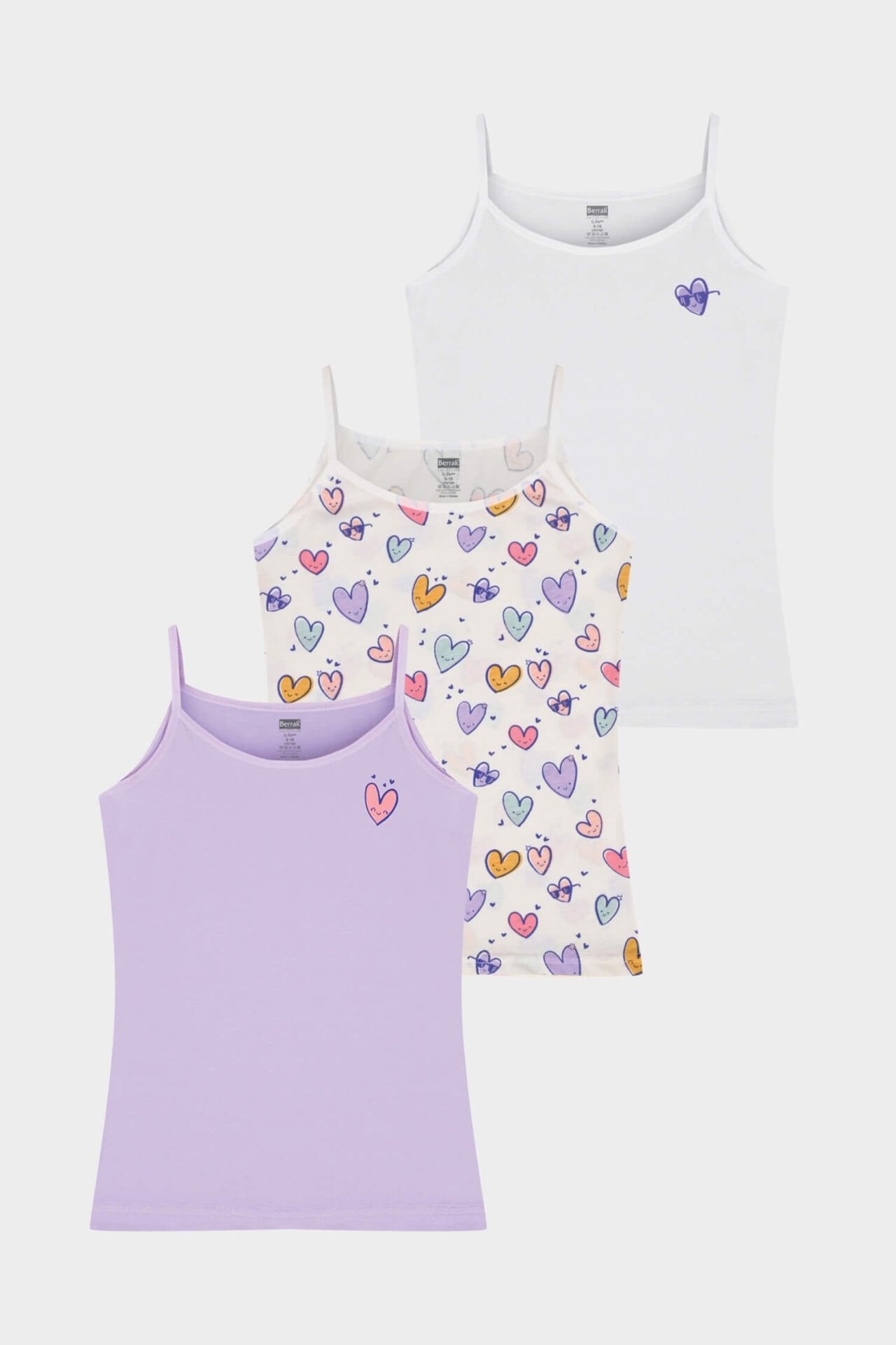 Kız Çocuk İnce Askılı Atlet – 3’lü Kalp Desenli Set