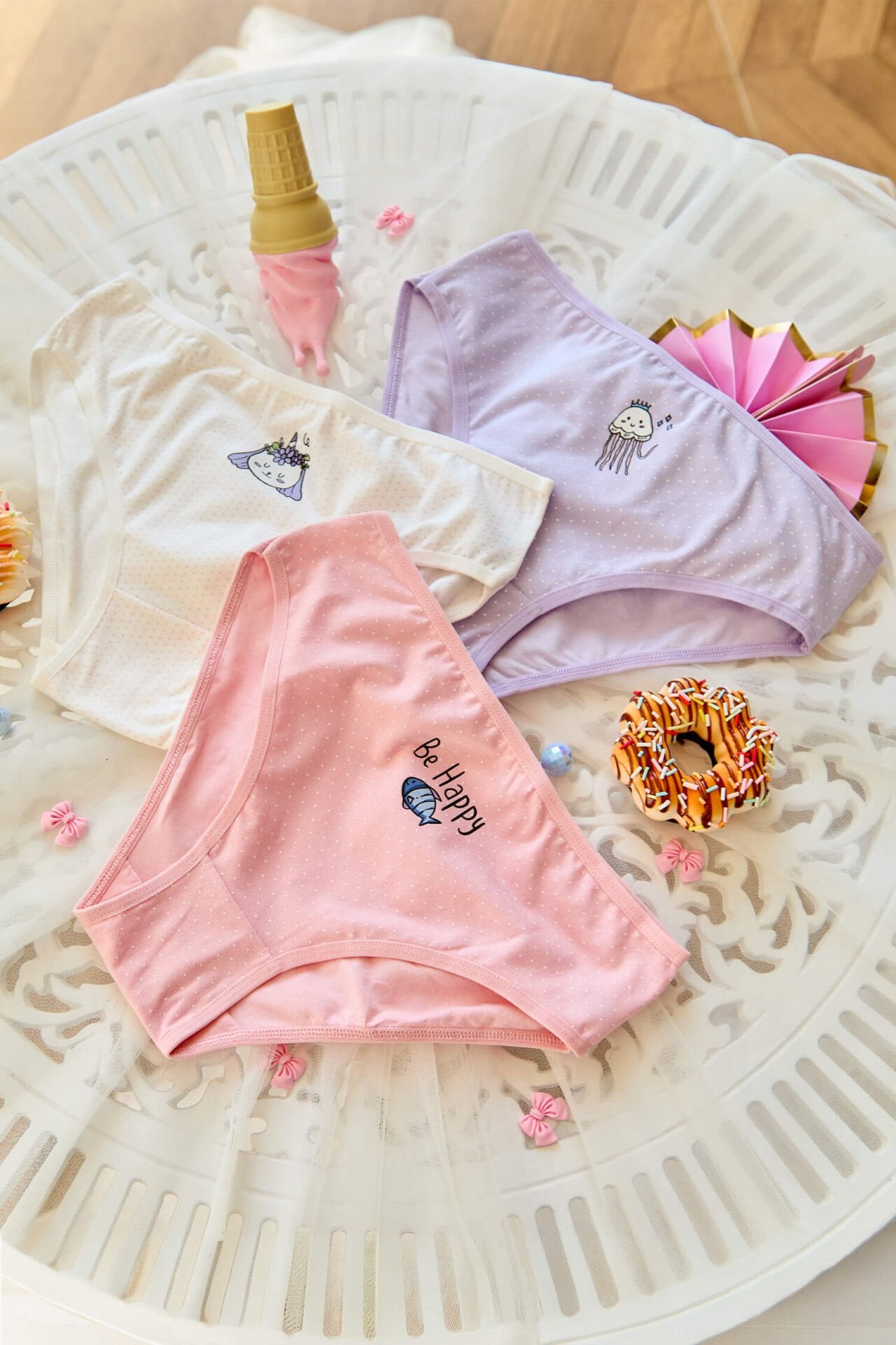 ocukların gün boyu rahatça hareket edebilmesi için tasarlanan 3'lü kız çocuk külot seti, canlı renkleri ve sevimli desenleriyle eğlenceli bir kullanım sunar.
