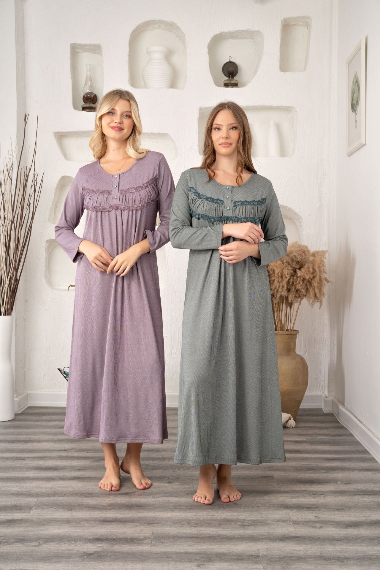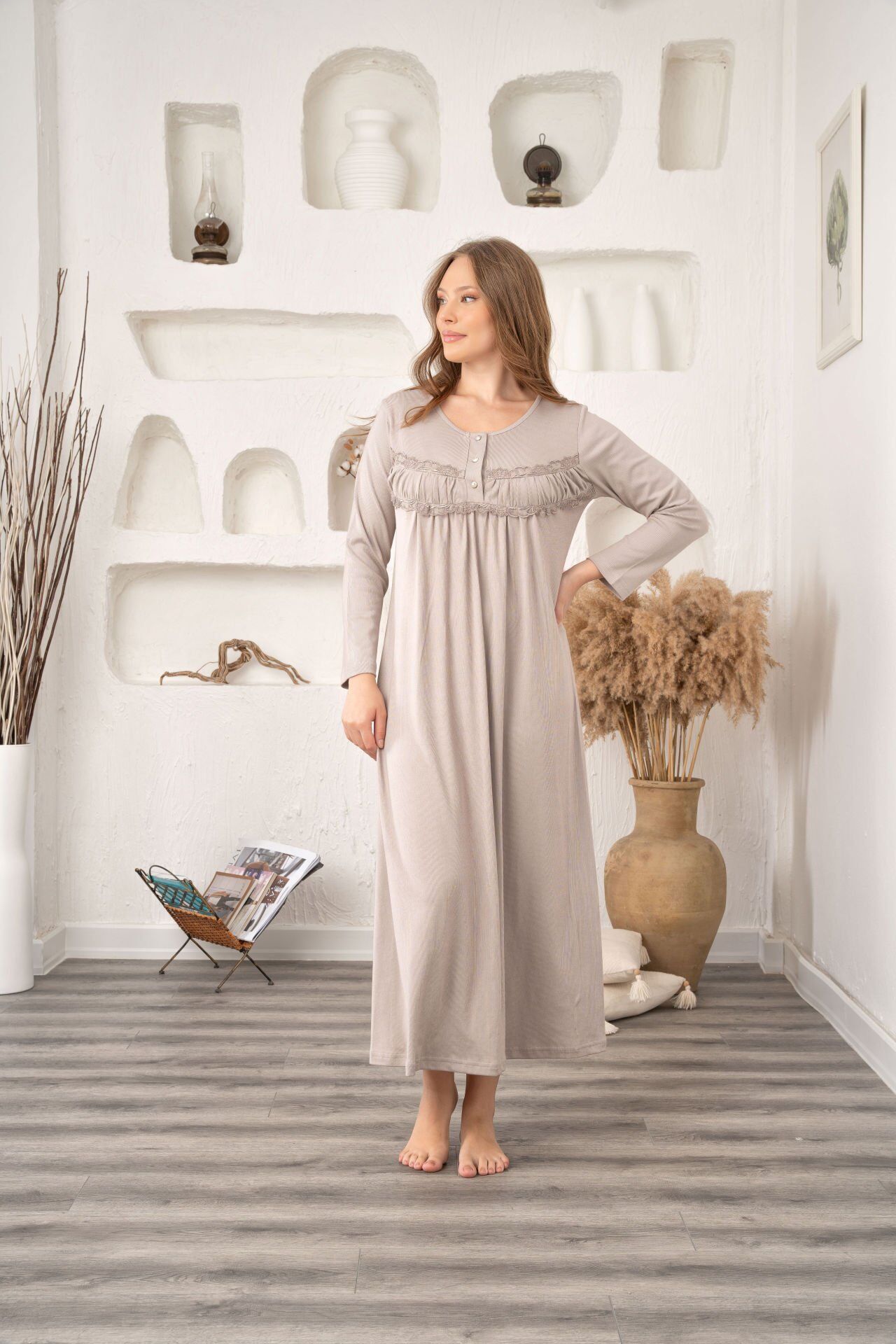 Bu uzun gecelik, rahatlığı ve zarif tasarımıyla hem şıklığı hem de konforu bir arada sunar. Yumuşak kumaşı ve uzun boyuyla rahat bir uyku deneyimi sunarken, şık detaylarıyla da göz doldurur. Her gece için mükemmel bir seçim!