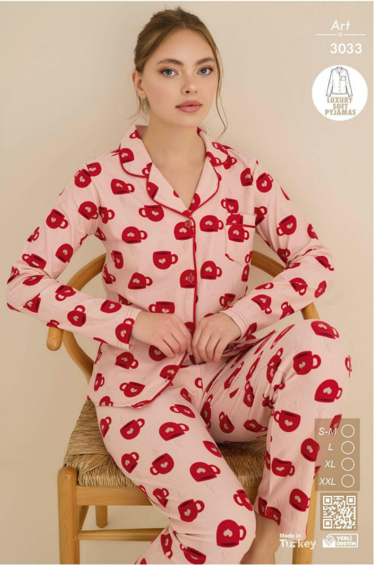 Şık tasarımı ve rahat kesimiyle boydan düğmeli uzun kol kadın pijama takımı, gece konforunuzu artırır. Yumuşak süet kumaş, cildinize dost yapı sunar ve sıcak tutar. Evde şıklığı ve rahatlığı bir arada yaşamak isteyenler için ideal seçim.