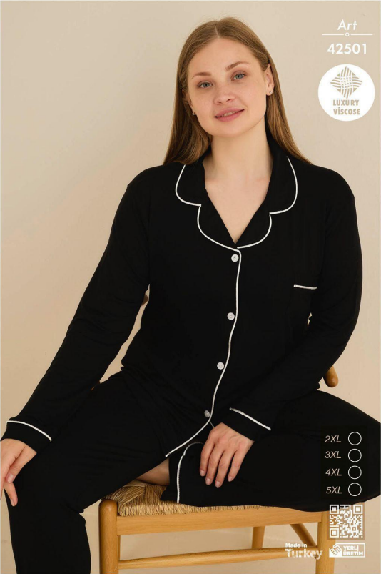 Rahat ve şık büyük beden boydan düğmeli pijama takımı, kaliteli kumaşıyla konfor sağlar. Uzun düğmeleri, kolay giyip çıkarma imkanı sunar. Nefes alabilen dokusu sayesinde tüm gece ferah kalırsınız. Evde şıklığı ve rahatlığı bir arada yaşamak isteyenler için ideal seçim.