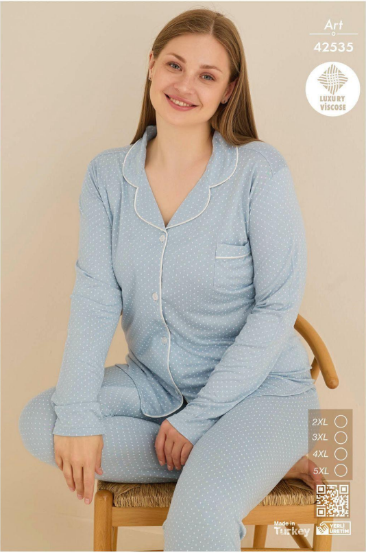 Rahat ve şık büyük beden boydan düğmeli pijama takımı, kaliteli kumaşıyla konfor sağlar. Uzun düğmeleri, kolay giyip çıkarma imkanı sunar. Nefes alabilen dokusu sayesinde tüm gece ferah kalırsınız. Evde şıklığı ve rahatlığı bir arada yaşamak isteyenler için ideal seçim.
