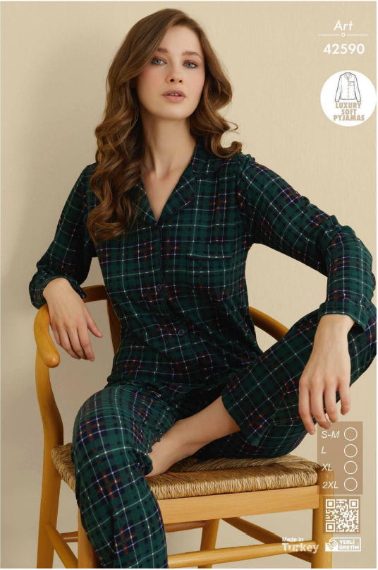 Şık tasarımı ve rahat kesimiyle boydan düğmeli uzun kol kadın pijama takımı, gece konforunuzu artırır. Yumuşak süet kumaş, cildinize dost yapı sunar ve sıcak tutar. Evde şıklığı ve rahatlığı bir arada yaşamak isteyenler için ideal seçim.