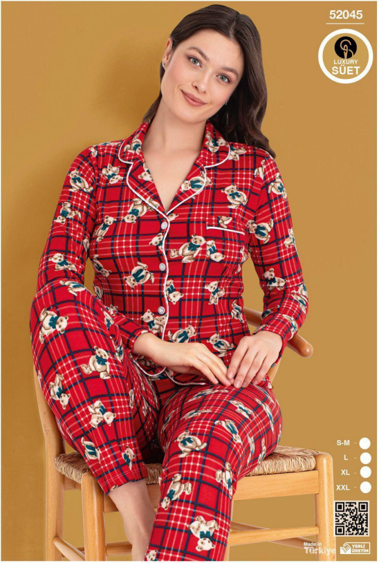 Şık tasarımı ve rahat kesimiyle boydan düğmeli uzun kol kadın pijama takımı, gece konforunuzu artırır. Yumuşak süet kumaş, cildinize dost yapı sunar ve sıcak tutar. Evde şıklığı ve rahatlığı bir arada yaşamak isteyenler için ideal seçim.