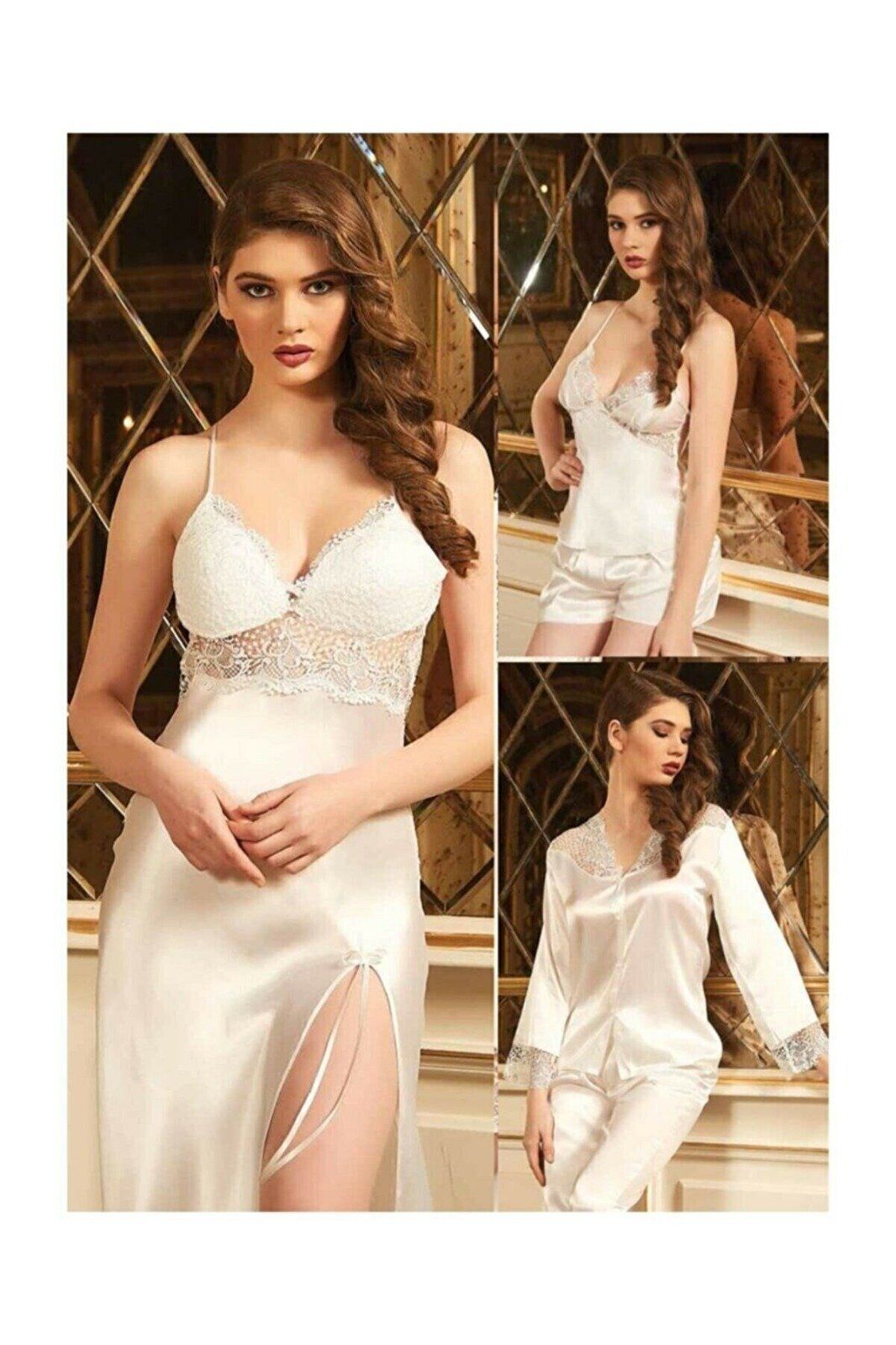 Satenin Şıklığı Dantel Detaylar İle Mükemmel Birleşimi Bordo, Ekru, Pudra Renk Seçenekleri İle Sizlerle