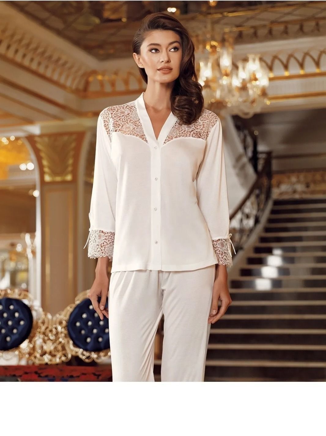 Pamuk Kumaş, Dantel Detaylı Şık Gecelik Seti