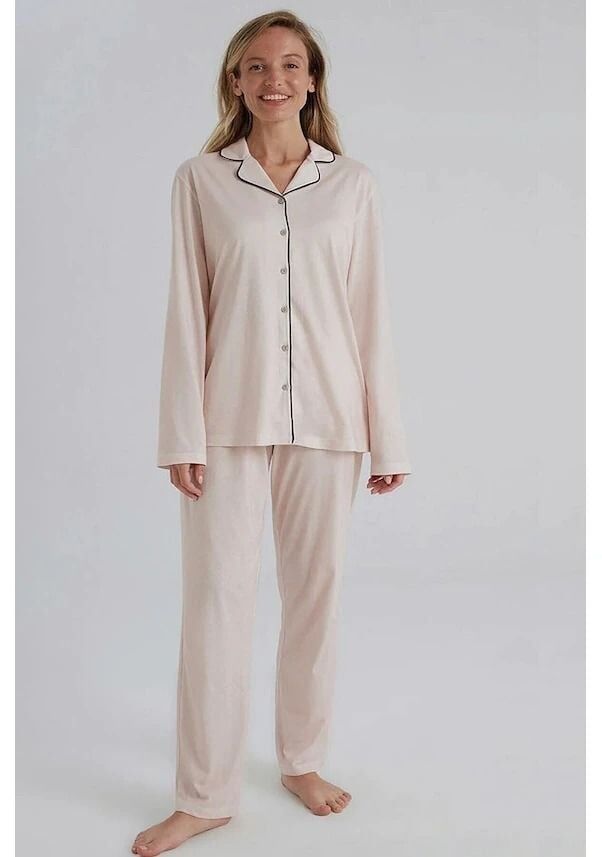 Bu uzun kollu mevsimlik kadın pijama takımı, yumuşak ve nefes alabilir %100 pamuk kumaşıyla rahat bir gece uykusu sunar. Rahat kesimi ve şık tasarımıyla hem şıklığı hem de konforu bir arada sunar. İnce detaylarıyla kullanıcıya farklı bir deneyim sunar.