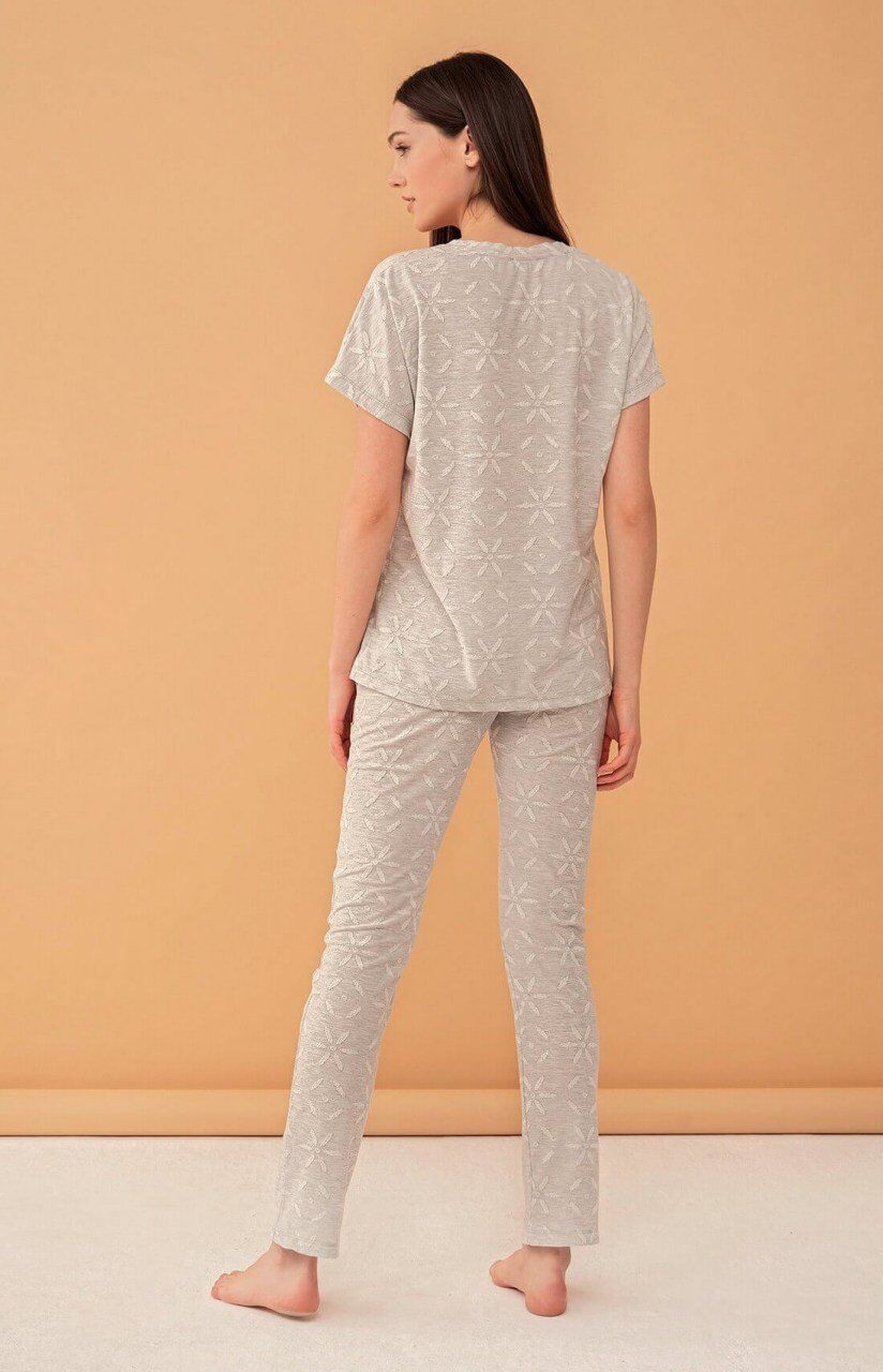 Feyza 4010 Çicek Desenli Jakar Kumaşlı Unicon Baskılı Pembe Pijama Takımı