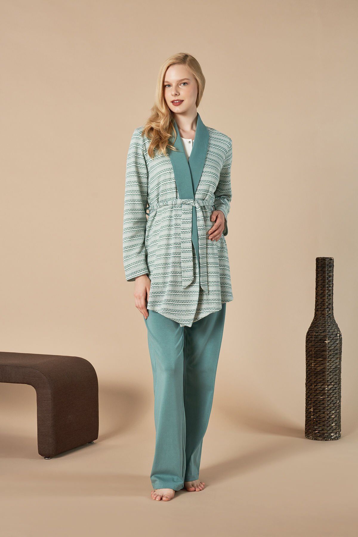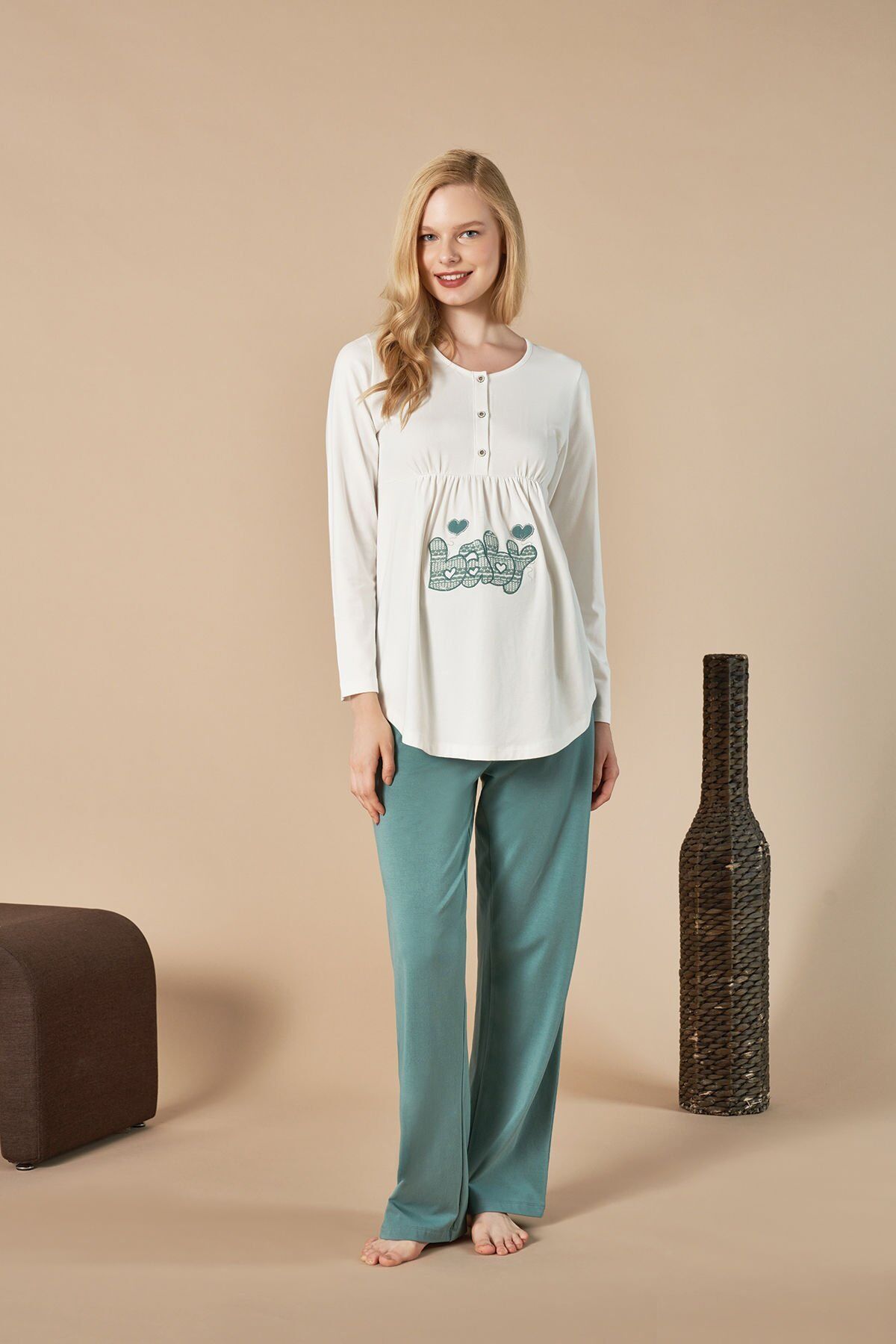 Bu şık ve konforlu lohusa pijama takımı, yeni anneler için mükemmel bir seçenek. Rahat kesimi ve yumuşak kumaşı ile hem rahatlık hem de şıklık sunuyor. Lohusa pijama takımı, emzirme için uygun tasarımıyla pratik bir kullanım sunuyor. Yeni annelerin ihtiyaçlarına uygun olarak tasarlanmış olan bu takım, özel bir hediye seçeneği olabilir.