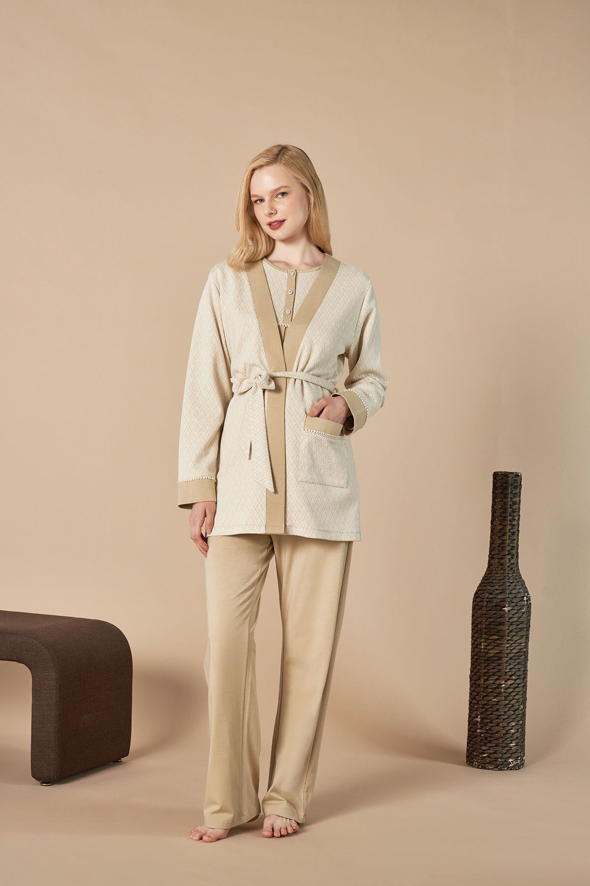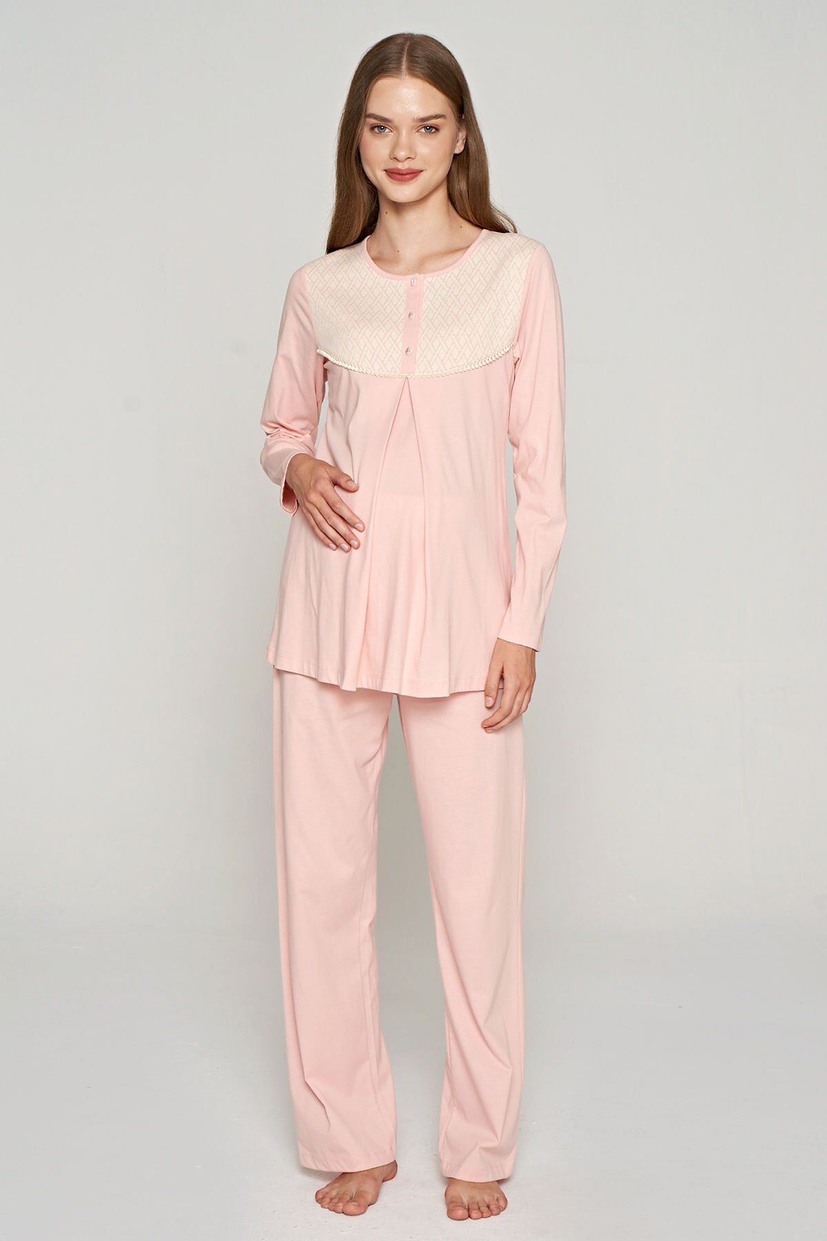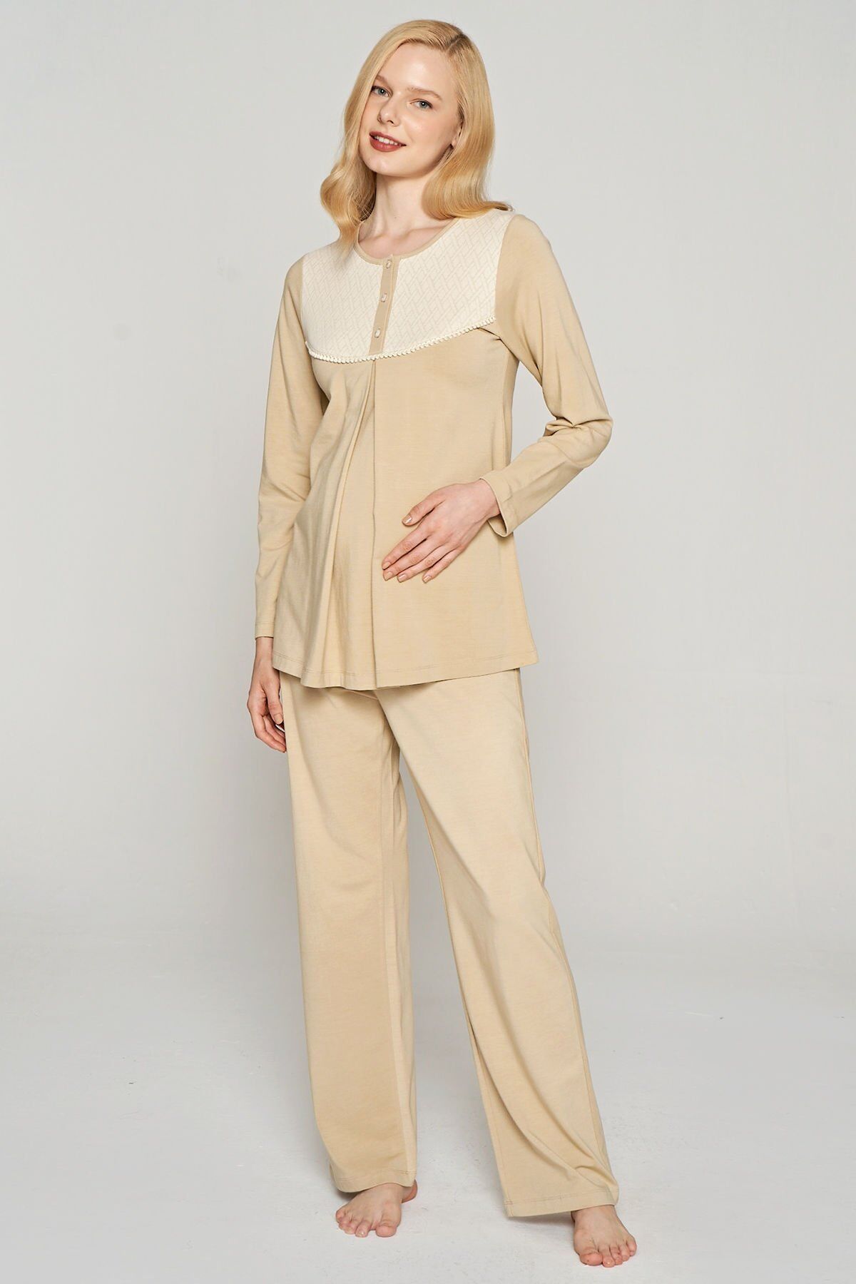 Bu şık ve rahat lohusa pijama takımı, yeni annelerin rahat ve şık hissetmeleri için özel olarak tasarlanmıştır. Pamuklu kumaşıyla cildi tahriş etmeden rahat bir uyku sunar. Ayrıca emzirmeyi kolaylaştıran özel bir tasarıma sahiptir. Yumuşak dokusu ve şık görünümüyle, yeni annelerin ihtiyaçlarını karşılamak için mükemmel bir seçimdir.