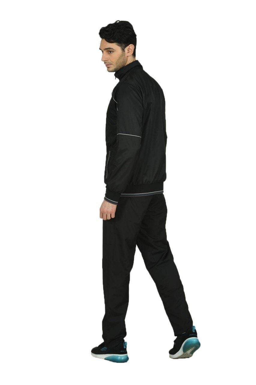 Yarım balıkçı yaka, önden fermuarlı, kolları ve beli ribanalı, düz paça mikro eşofman takımı