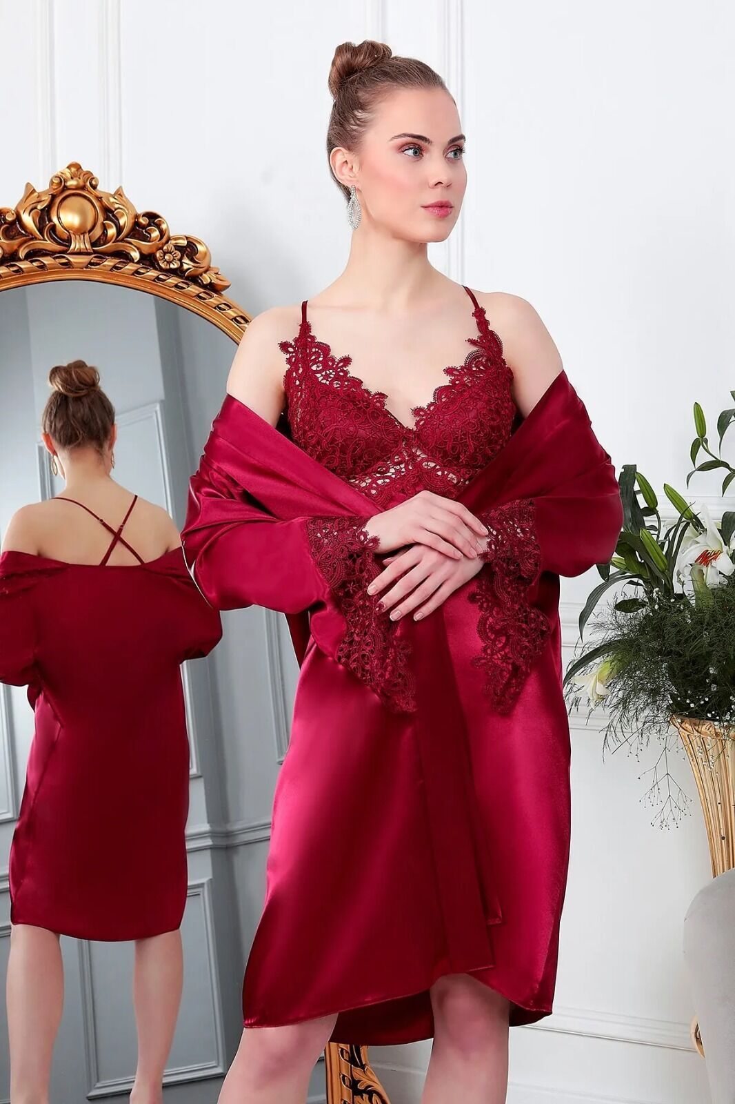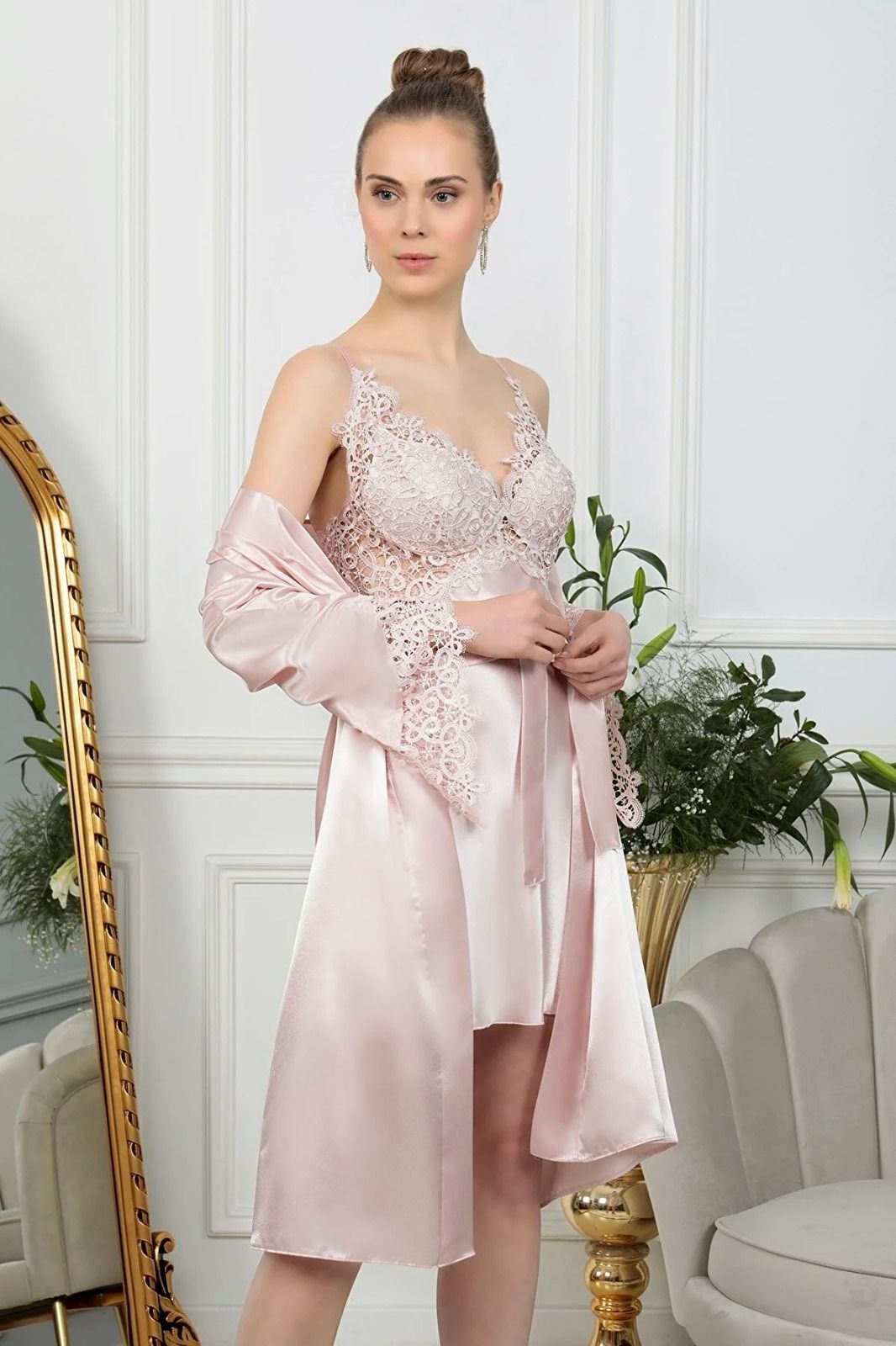 6 Parça Saten Gecelik Seti