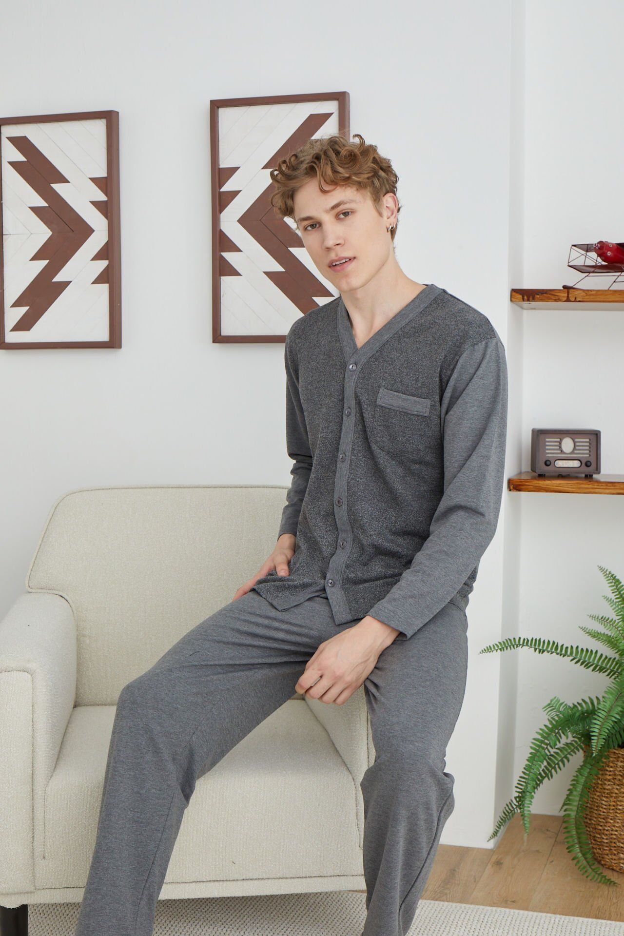 Kly 8029 boydan düğmeli pijama takımı