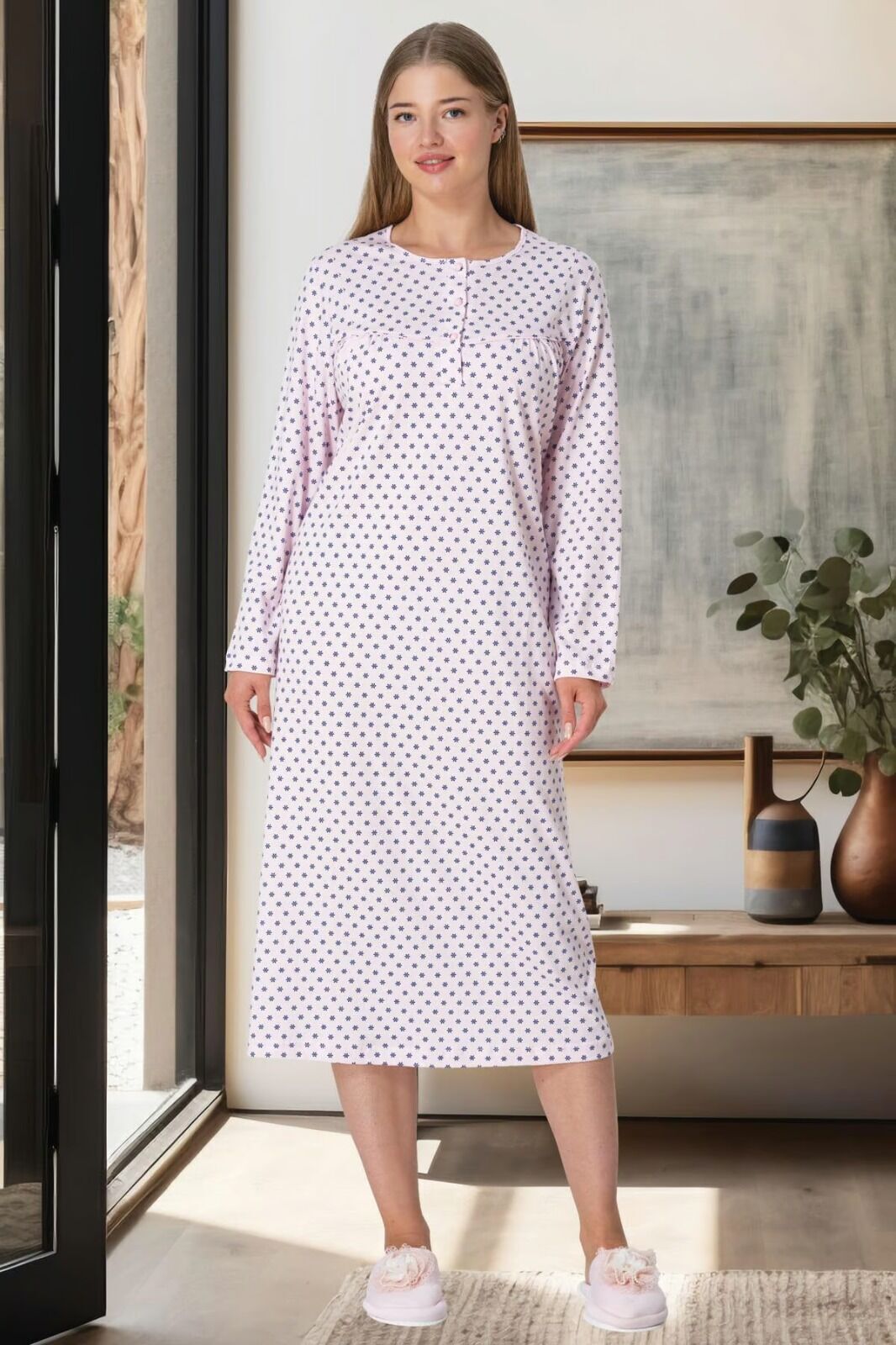 Gecelik rahat kalıptır. %100 Pamuk kumaştan üretilmiş olup esnek yapıya sahiptir. |