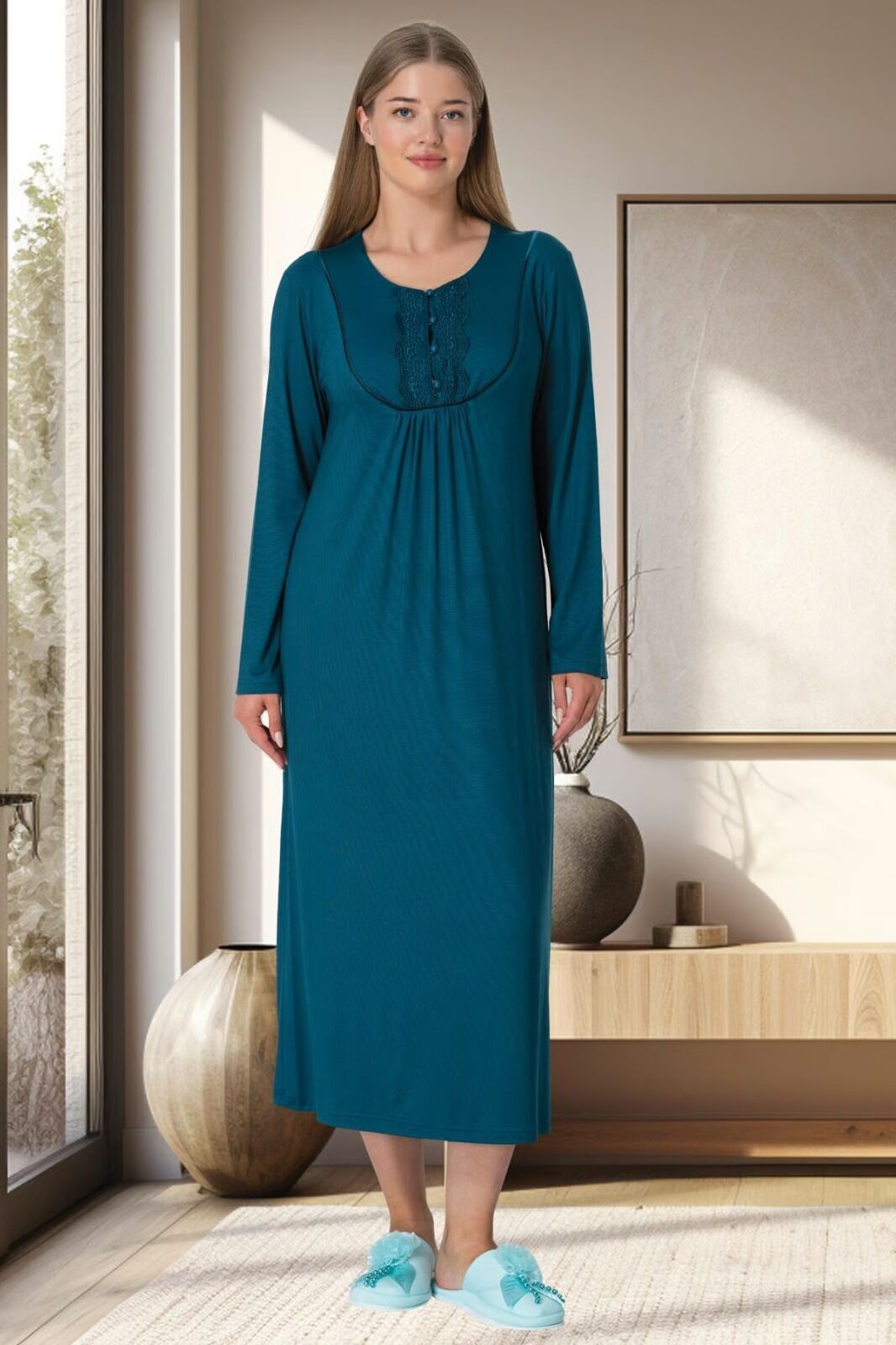 Gecelik rahat kalıptır. Likralı viskon pamuk kumaştan üretilmiş olup esnek yapıya sahiptir.