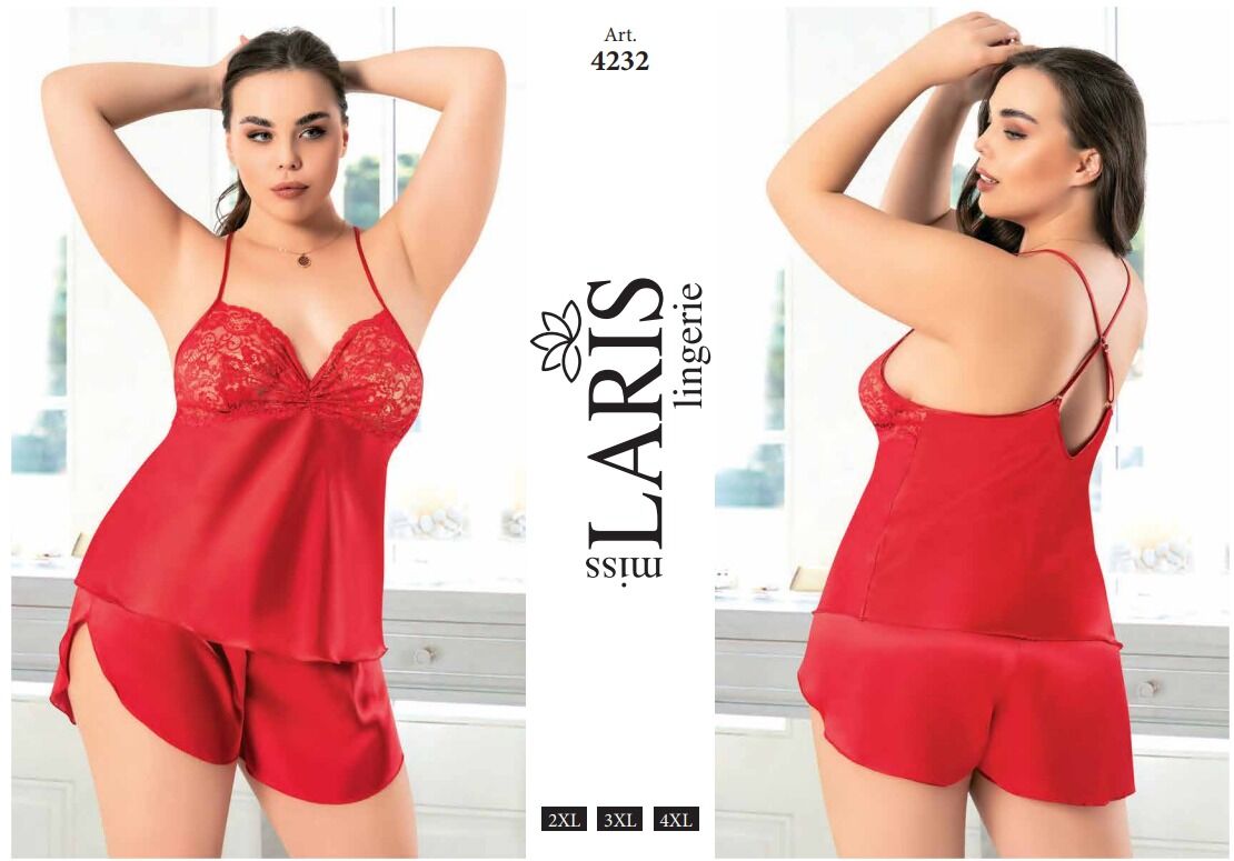 Miss Laris 4232 Büyük Beden Saten Şortlu Takım