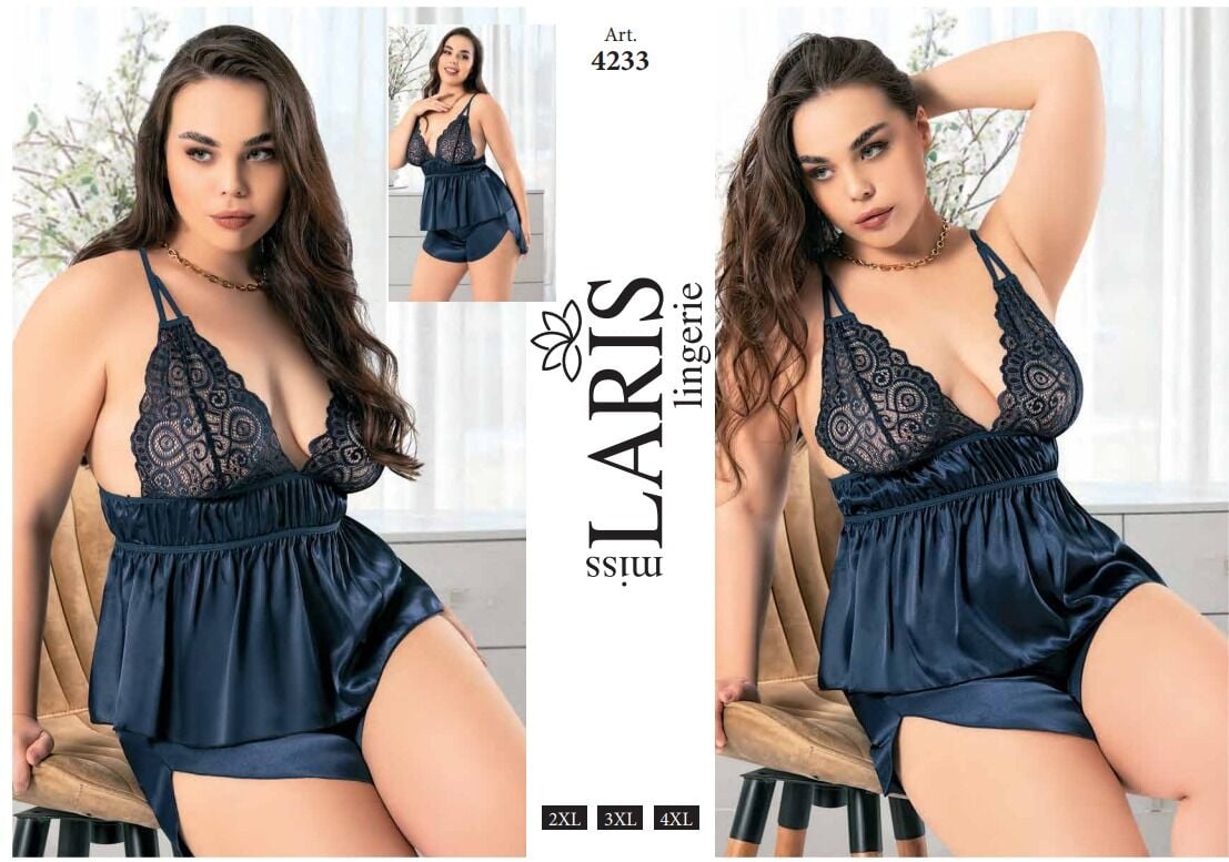 Miss Laris 4233 Büyük Beden Saten Şortlu Takım