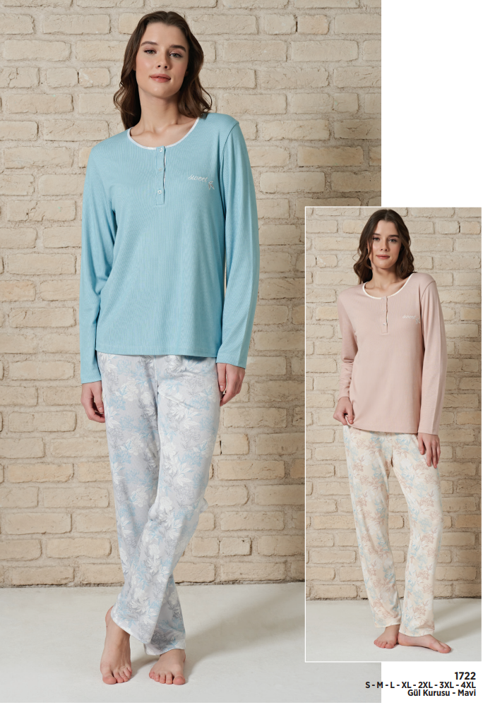 Uzun kol 3 düğmeli pijama takım