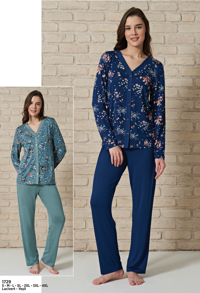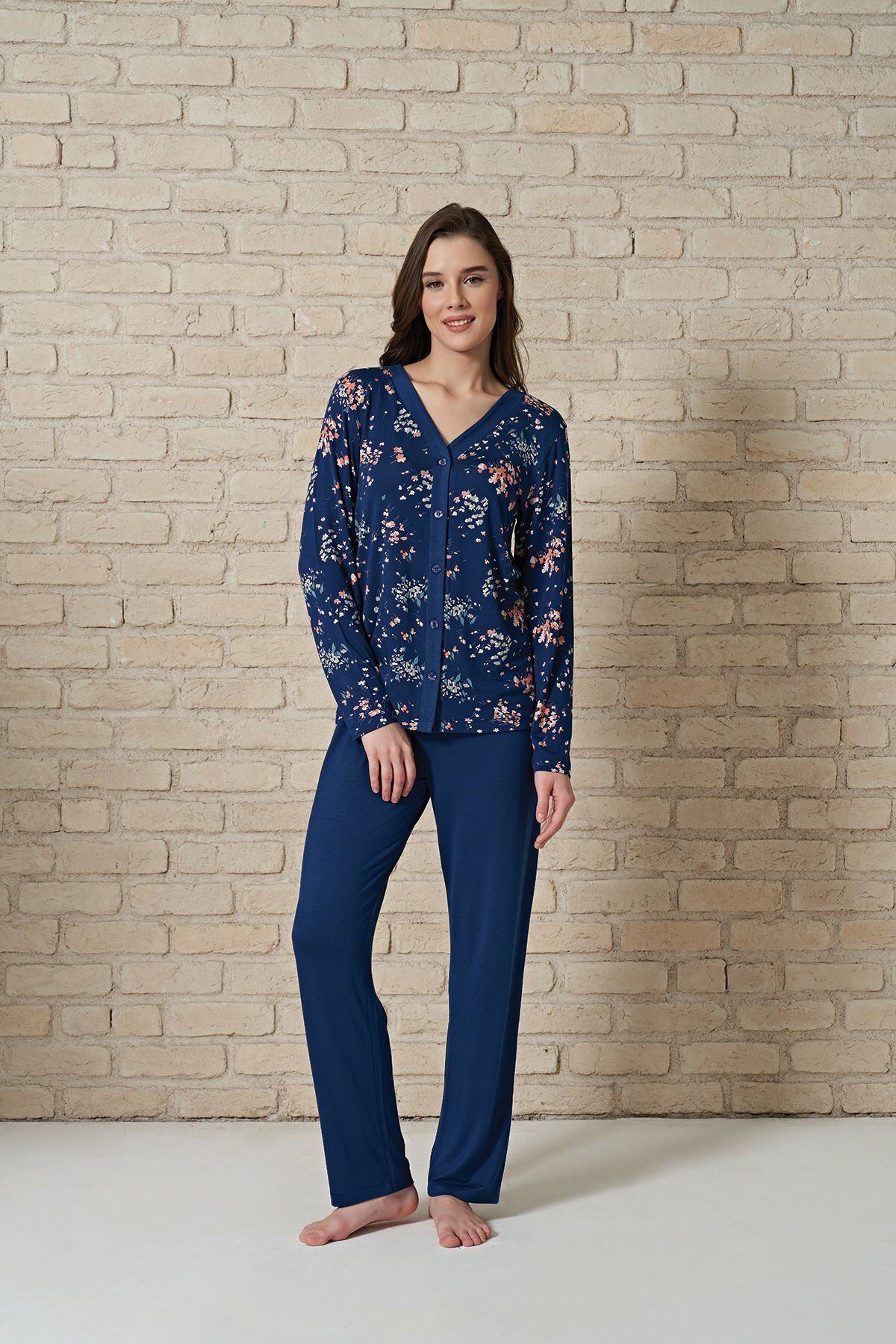 Uzun kol boydan düğmeli pijama takım