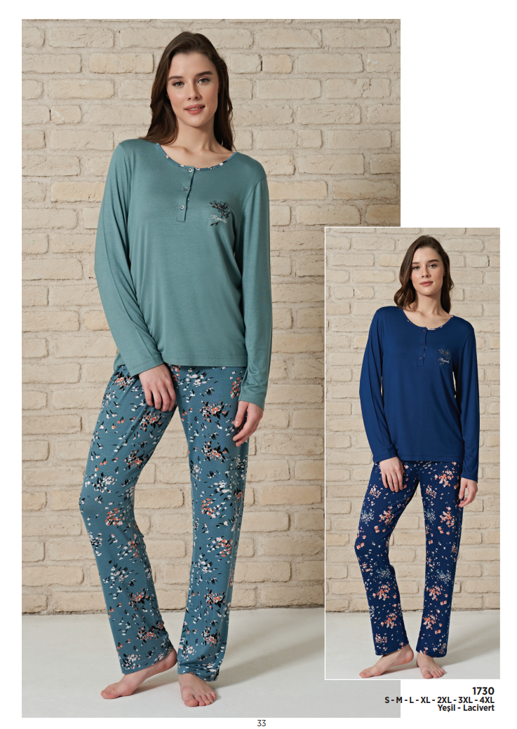 Uzun kol 3 düğmeli pijama takım