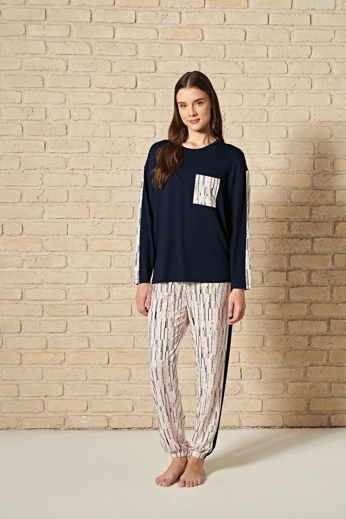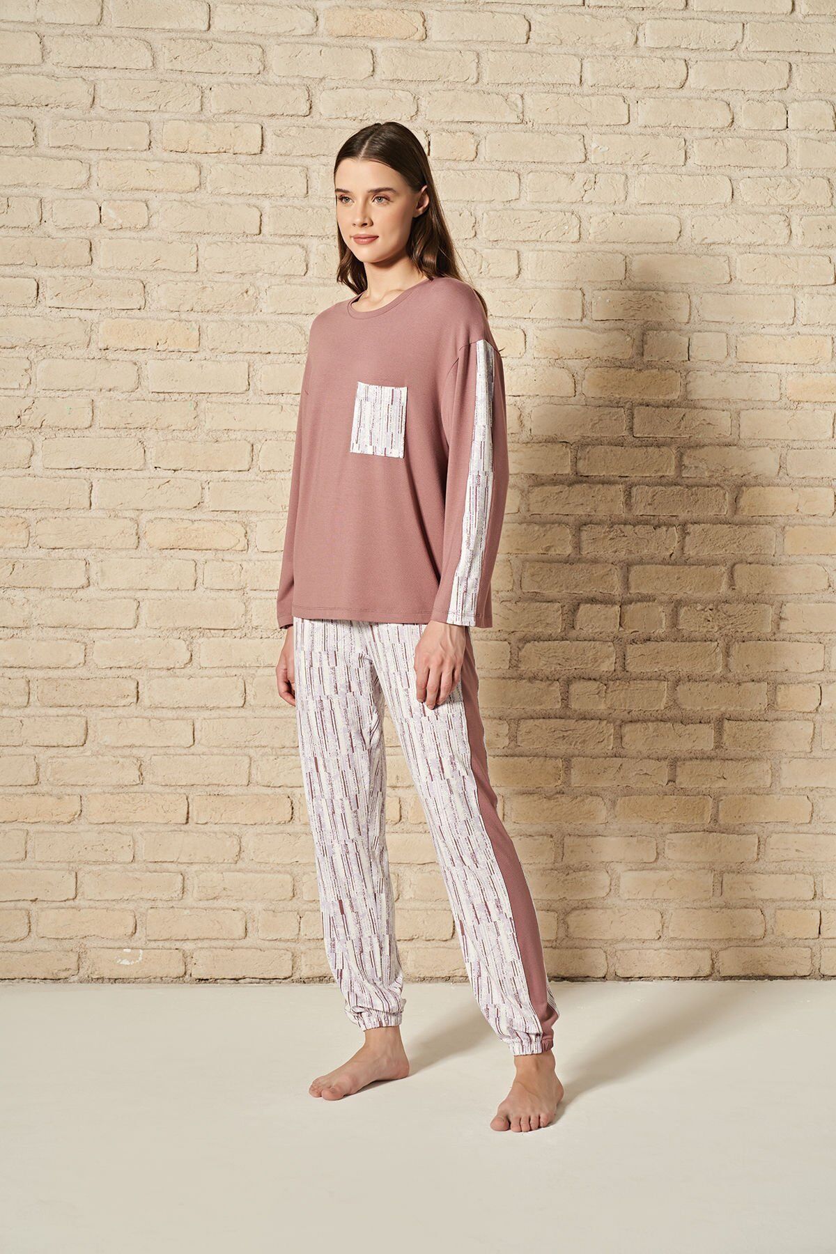 Bu kadın spor pijama takımı, rahatlık ve şıklığı bir araya getiriyor. Esnek kumaşı ve ferah kesimi ile gece boyunca konfor sunarken, şık tasarımıyla da tarzınızı yansıtmanızı sağlıyor. Uyku kalitenizi yükselten bu pijama takımı, spor ve şık tarzıyla dikkat çekiyor.