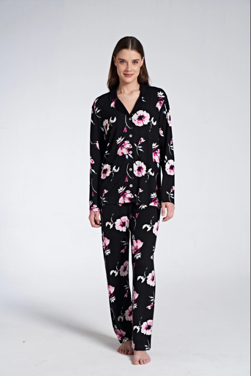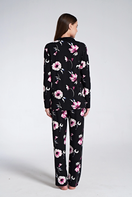 Uzun kol boydan düğmeli pijama takım