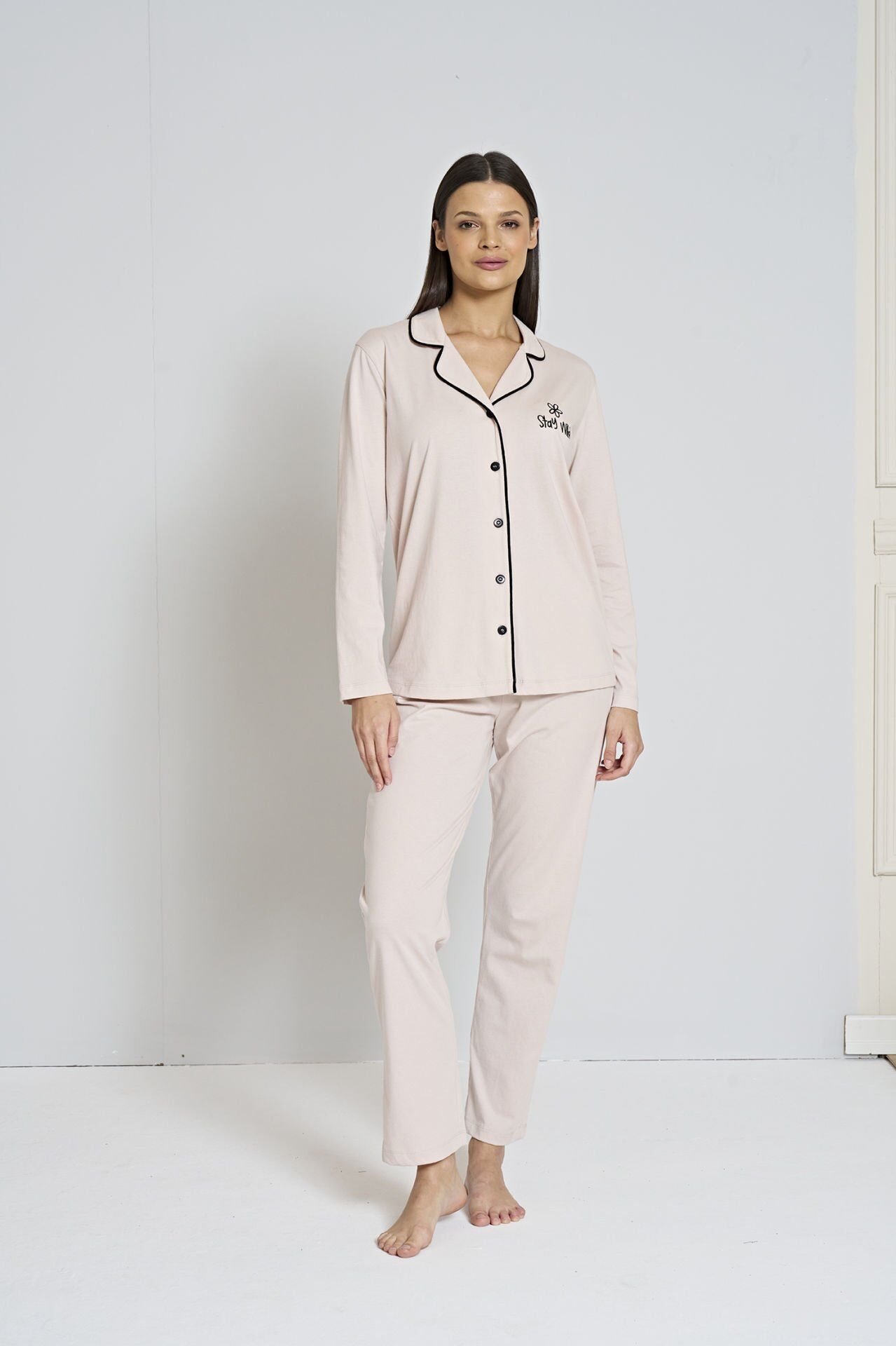 Bu mevsimlik uzun kol pijama takımı, rahatlıkla günün stresini atmanı sağlayacak. Yumuşak ve nefes alabilen kumaşı ile kullanıcısına konfor sunarken, şık ve şık bir görünüm de sağlar. Uyku veya dinlenme zamanlarında konforlu bir seçenek arayanlar için ideal bir tercih.
