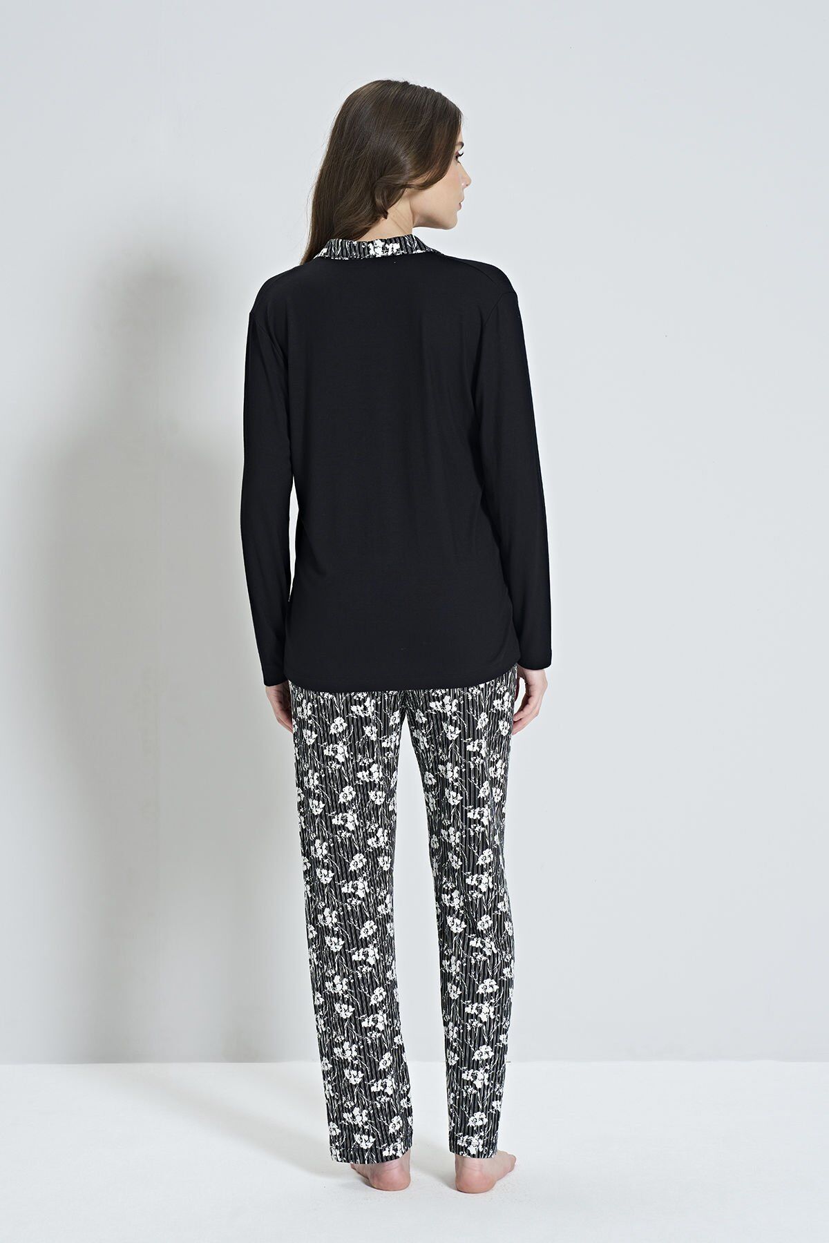 Bu mevsimlik uzun kol pijama takımı, rahatlıkla günün stresini atmanı sağlayacak. Yumuşak ve nefes alabilen kumaşı ile kullanıcısına konfor sunarken, şık ve şık bir görünüm de sağlar. Uyku veya dinlenme zamanlarında konforlu bir seçenek arayanlar için ideal bir tercih.