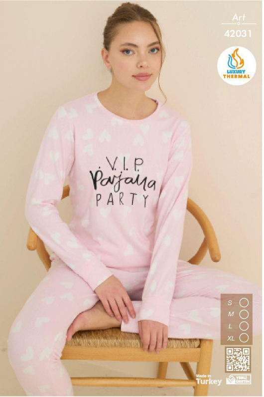 Uzun kol kadın pijama takımı, yumuşak ve nefes alabilen thermal kumaştan üretilmiştir. Soğuk kış gecelerinde sıcak tutar, rahat kesimiyle evde konfor sağlar. Şık tasarımı ve kaliteli materyaliyle hem kullanım kolaylığı hem de estetik sunar. Rahat uyku için idealdir.