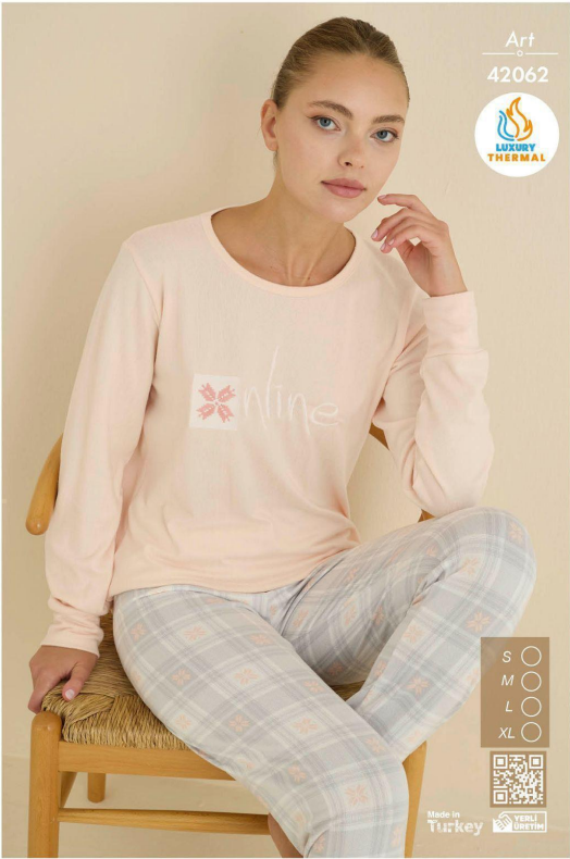 Uzun kol kadın pijama takımı, yumuşak ve nefes alabilen thermal kumaştan üretilmiştir. Soğuk kış gecelerinde sıcak tutar, rahat kesimiyle evde konfor sağlar. Şık tasarımı ve kaliteli materyaliyle hem kullanım kolaylığı hem de estetik sunar. Rahat uyku için idealdir.