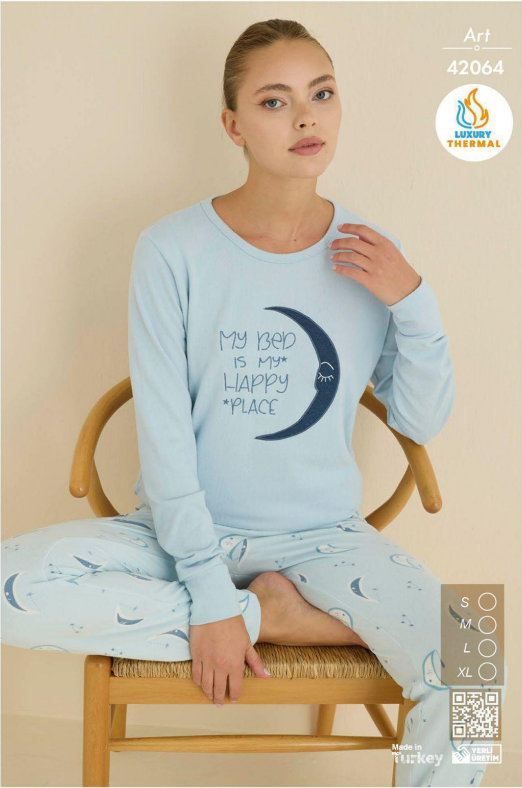 Uzun kol kadın pijama takımı, yumuşak ve nefes alabilen thermal kumaştan üretilmiştir. Soğuk kış gecelerinde sıcak tutar, rahat kesimiyle evde konfor sağlar. Şık tasarımı ve kaliteli materyaliyle hem kullanım kolaylığı hem de estetik sunar. Rahat uyku için idealdir.
