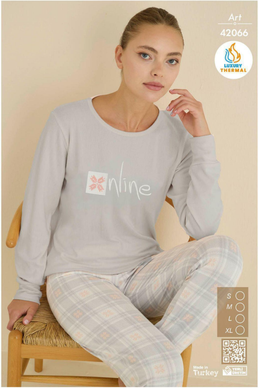 Uzun kol kadın pijama takımı, yumuşak ve nefes alabilen thermal kumaştan üretilmiştir. Soğuk kış gecelerinde sıcak tutar, rahat kesimiyle evde konfor sağlar. Şık tasarımı ve kaliteli materyaliyle hem kullanım kolaylığı hem de estetik sunar. Rahat uyku için idealdir.