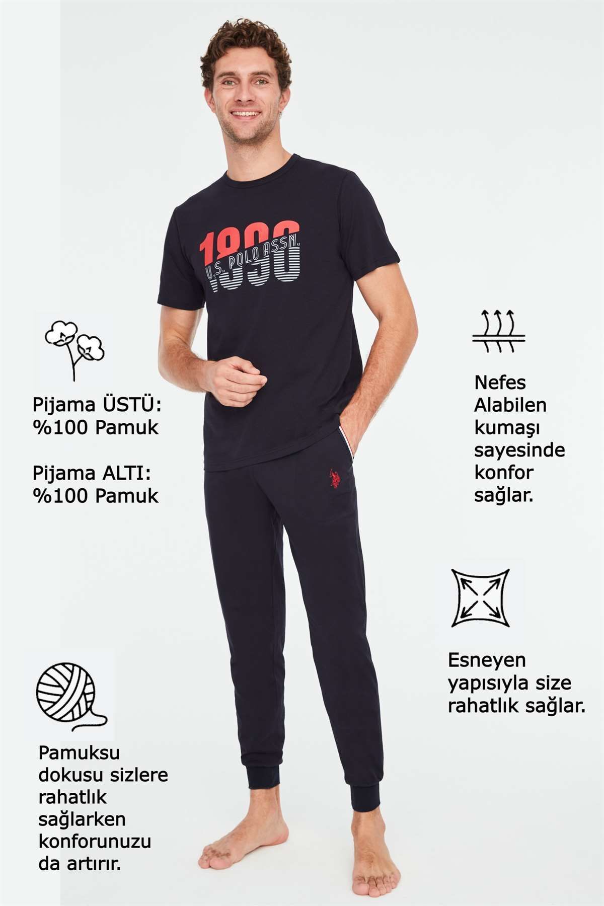 U.S. Polo Assn. - Erkek Lacivert Yuvarlak Yaka Pijama Takımı 18692
